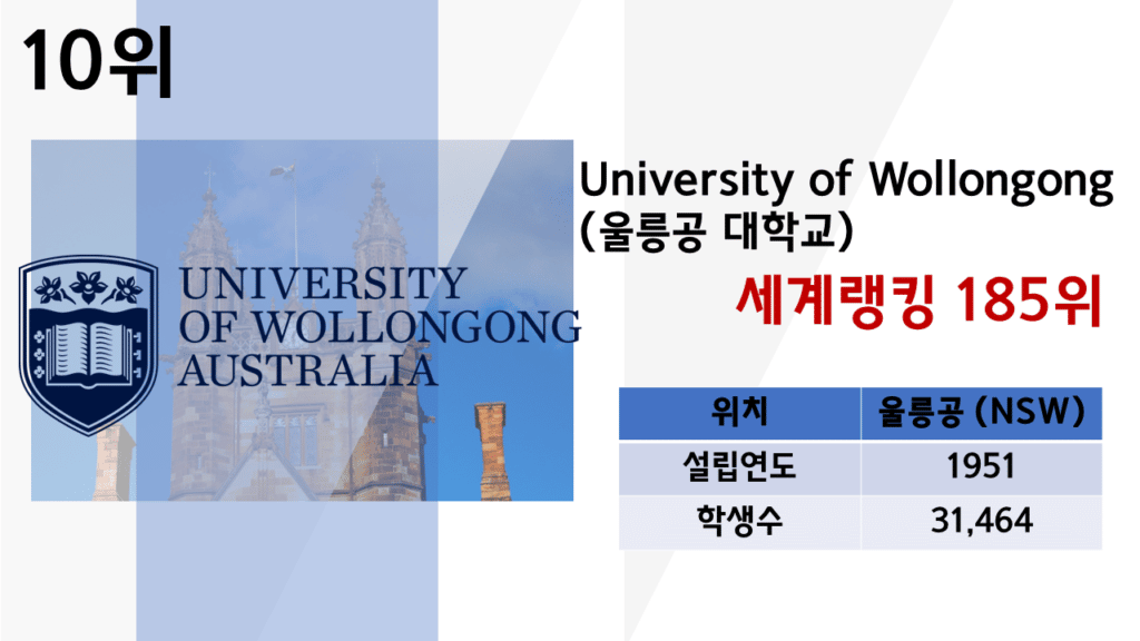 10위 : University of Wollongong (울등공대)(세계랭킹 185위)