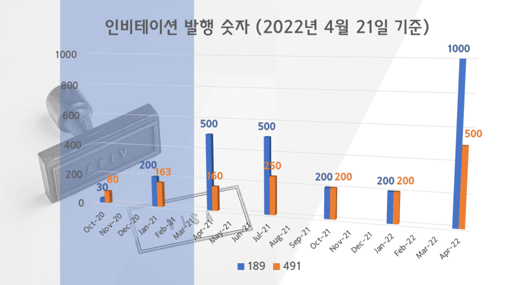 독립기술이민 189 비자 및 지방비자 491 비자로 영주권을 신청하실 때 몇점이 필요하고 몇명이나 신청이 가능한지, 190 주정부스폰과 491지방비자 노미네이션 발행 숫자는 얼마나 되는지 3개월 만에 발표가 된 2021년 22년 프로그램 연도의 inviation 라운드 2022년 4월 Skillselect invitaion round 를 통해 알아보겠습니다.