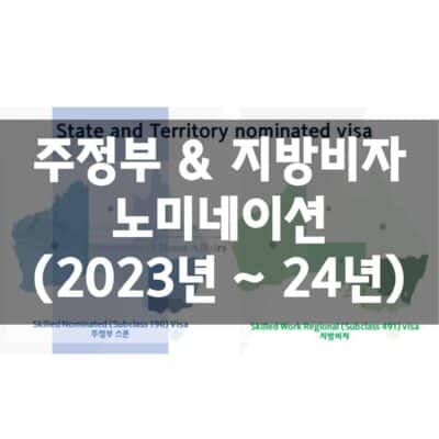 호주 주정부 & 지방비자 노미네이션 (2023년 ~ 24년) 주 및 테리토리 별 할당 숫자 호주 주정부 & 지방비자 노미네이션 (2023년 ~ 24년) 정보입니다.주정부스폰 (Skilled Nominated Visa)(190 비자)와 지방비자 Skilled Work Regional visa(491 비자)...